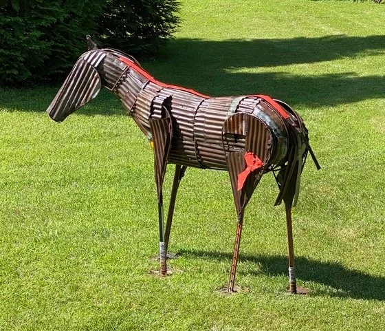 I create to instill a degree of spectator confusion and in the words of John Yau, "ambiguity trying to invite the viewer's scrutiny" and participation. Although in recent years I've focused on abstracted equine sculptures, I don’t see myself being trapped by a leitmotiv. However, I am definitely captured by geometric shapes. Some might describe my works as a conceptual, but I'm not informed enough to understand and categorize my theme or style. I am heavily influenced by the Cubist. I am taken by transparency as well as the layering effect used by Braque to appear three dimensional with impasto. So in place of paint, I may layer with sheets of steel. Each production is a study and as said by the poet and lyricist, Ancel Neuberger, never expecting perfection, as that would eliminate the search, and for me, the end.
